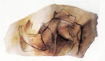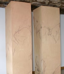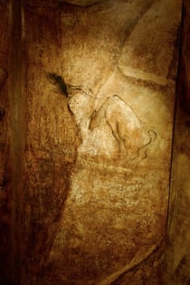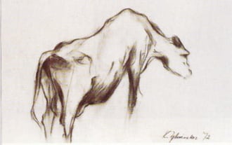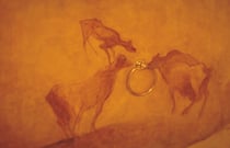 A recurring theme in Kristi Ylvisaker’s drawings, since her early days in Norway when she began using farm animals as models, was inspired by the cave paintings of Lascaux and Chauvet in France. An exhibit of these drawings traveled to the United States in 1995. She also turned the cellar under her home into an ancient cave (see video below) and has cave murals in her gallery. In addition, she did a commissioned cave spa in Des Moines, IA.